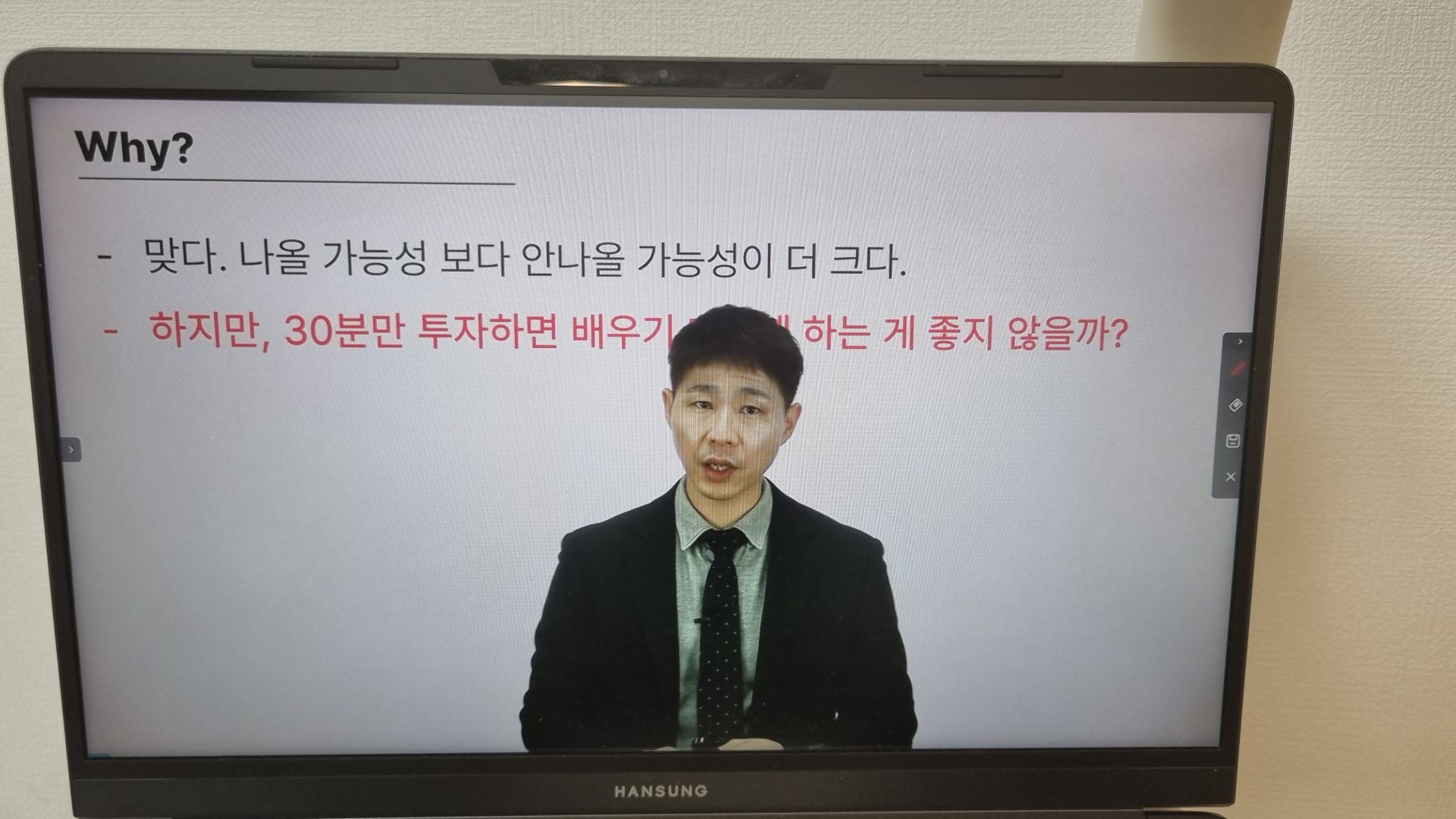 또한 이번에 한사능으로 바꾸면서 막연한 불안감때문에 준비를 잘못하고 있는것도 강의를 통해 알 수 있었습니다.