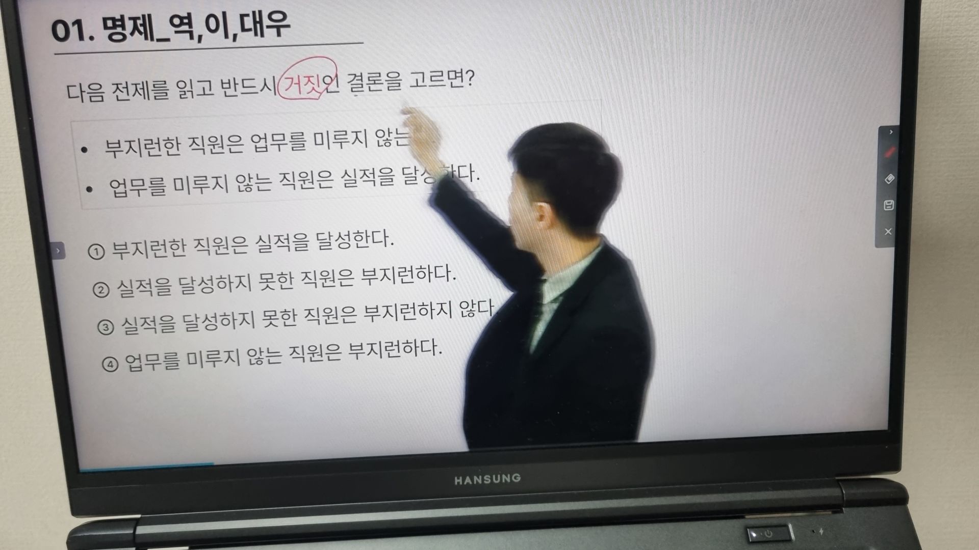 강의는 단순히 문제 풀이를 반복하는 방식이 아니라 자주 출제되는 유형을 중심으로 최적의 풀이 순서와 사고 흐름을 정립해 주는 실전형 커리큘럼으로 구성되어 있었습니다. 무작정 모든 선지를 다 따져보려던 기존의 나쁜 습관을 버리고, 필요한 조건부터 걸러서 적용하는 '읽는 순서'의 기술을 전수해 주어 풀이를 한결 깔끔하게 만들어 주었습니다. 또한 다양한 풀이 팁과 정답 판별 기준은 손이 멈추는 시간을 획기적으로 줄여주었습니다. 특히 경로 문제나 추론 유형을 다룬 심화 강의는 복잡한 구조를 유형화하여 무작정 계산이나 답 찾기 시도부터 하던 저의 나쁜 습관을 완전히 고쳐놓았습니다.