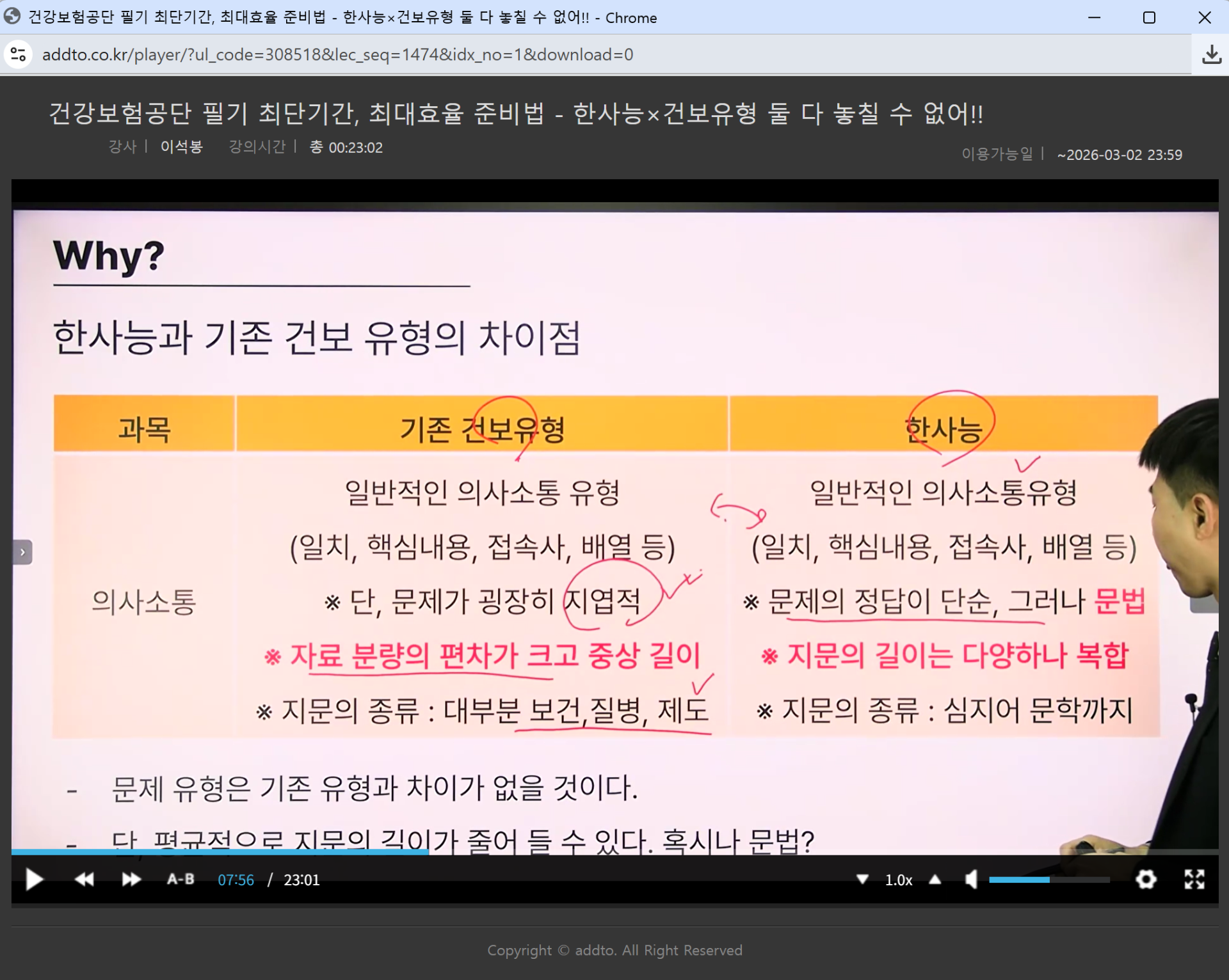 국민건강보험공단 출제대행변경에 따른 핵심포인트와 어떻게 접근하는게 효율적인 풀이방법인지 처음에 안내해주셔서 좋았습니다. 모바일로 강의를 수강하고 있는데, 사진을 남기기가 어려워서 화면 캡쳐를 했습니다ㅎㅎ