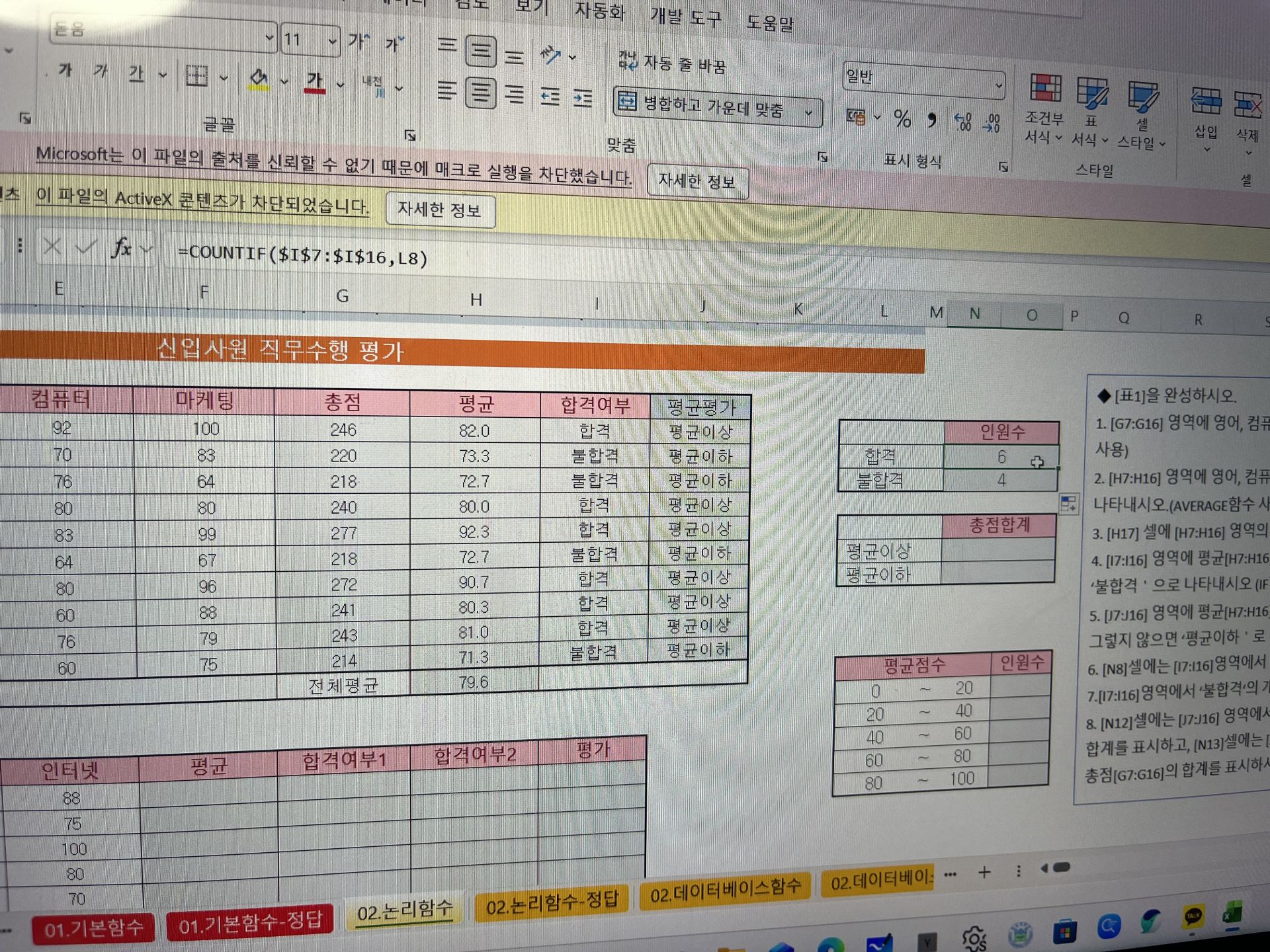 본 시험에서 함수 계산 문제, 조건부서식 문제 총 두문제를 아예 못풀었지만 나머지는 열심히 풀어서 합격할 수있었어요 .