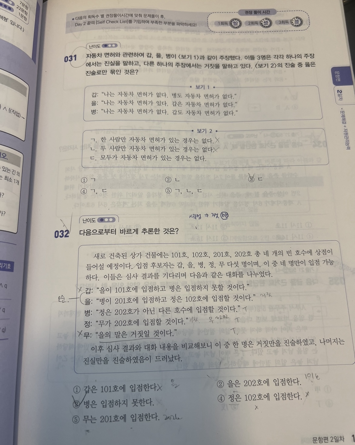 대신 피셋형 강의를 더 꼼꼼히 들었습니다! 피셋문제를 풀 때 꼭 알아야하는 스킬을 체화하려고 했고, 특히! 강의를 듣고 줄글선지에서 먼저 볼 선지를 선택하는 기준이 명확해졌습니다! 그동안은 1번부터 차례로 봤다면 석봉쌤 말씀처럼 단순비교로 빠르게 판단할 수 있는 문제부터 푸는 연습을 통해 힘들이지 않고 답을 찍을 수 있었습니다!!
