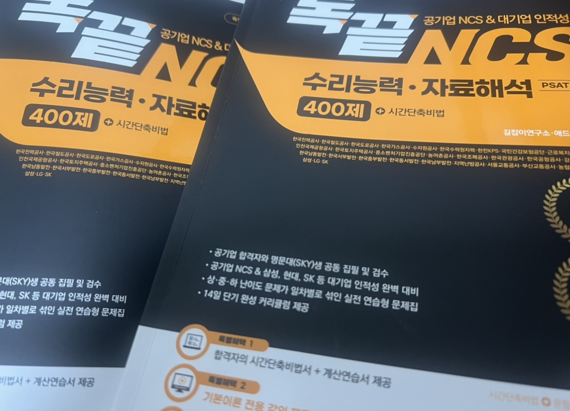 - nave**** / 2025-01-31 BEST #커리큘럼이 좋아요 #꿀팁이 가득해요 +3 독끝 NCS 문제해결능력+자원관리능력을 사용해보고 좋아서 수리능력, 자료해석도 풀어봤다. 수많은 공겹 취준생들에게 혼자 독학하기에 정말 좋은 교재고 인강이라고하는데, 왜 그런지 지난번 문제해결능력+자원관리때도 느꼈지만 이번 수리능력, 자료해석 교재를 보면서도 또 느꼈다. 공기업 준비하는 독학러들에게 진짜 추천할만한 교재랑 인강이라고 생각된다. 공기업, PSAT 합격자의 NCS 문제풀이 시간단축 팁을 전체 문항에서 배울 수 있어 빠르게 답을 찾는 연습이 가능한 교재였다. 본격적으로 학습을 하기 전에 교재를 꼼꼼히 살펴봤다. 해설이 아주 상세하게 있는데, 어느 교재를 공부하던 해설이 상세한게 진짜 좋더라! 특히나 독학할때에는 진짜 중요한게 해설인것 같다. 또 난이도별로 매일 연습할 수 있도록 학습 스케쥴이 짜여있고, 합격자의 실전 노하우도 있다! 이번에도 해설이 진짜 자세하고 두껍다는 점이 큰 장점으로 다가왔다. 1일차, 2일차 이렇게 일자별로 구분되어 있어서 학습 계획을 세우기에 좋았고, 혼자 공부하는 사람들이나 처음 시작하는 사람들이 쉽고 체계적으로 접근할 수 있도록 학습 플랜과 학습 가이드를 상세하게 제공해줘서 든든했다. 초보자의 경우 정확한 학습이 중요하므로 1일치를 2일에 걸쳐서 해도된다고하니 너무 부담스럽지 않게 도전할 수 있겠다. 틀린 문제는 교재만큼 두껍고 엄청나게 상세한 해설로 왜 틀렸는지, 어떻게 하면 좋을지 다시 확인해볼 수 있다. NCS 자료해석에서 자주 출제되는 모든 유형을 빠르게 출 수 있는 접근법이 다양하게 수록되어있고, 모든 문항에 걸쳐서 상세한 해설이 있어서 진짜 독학하는 사람들에겐 정말 힘이 될 것 같았다. 각 문제에 대한 풀이 뿐 아니라 선지에 대한 풀이도 있어서 헷갈리는 선지에 대해 더 확실히 하고 넘어갈 수 있었다. 계산 풀이 과정을 생략하지 않고 자세하게 설명해줘서 초보자도 쉽게 배울 수 있을 것이라 생각된다. 그리고 맞춘 문제더라도 내 풀이 방법이 맞는지 확인해보기 좋고, 합격자의 실전 문제 풀이 순서를 통해 새로운 인사이트를 얻어서 빨리 감잡기에도 좋고 더 빠르게 답을 찾는 연습이 가능하다는 점이 좋았다. 애드투에서 강의를 신청하면 기본적으로 '수리.기초 수학'과 '독끝 NCS 문제 수리능력, 자료해석' 강의를 수강할 수 있다. 강의는 이론 강의와 문제 풀이 강의로 구성되어있는데, 이론+기출 강의에서는 시간단축 비법강의 내용을 가지고 처음 도전하는 사람도 쉽게 핵심 개념과 실전에 사용할 수 있는 팁들을 확실하게 배울 수 있다. 강의는 선생님 딕션이 좋아서 또박또박 잘 들리고, 교재를 화면에 꽉 띄운채 화면공유를 하는 형식으로 진행돼 과외받는 느낌도 들었고 편했다. 또 판서해주는대로 따라가다보면 쉽고 확실하게 내용을 습득할 수 있었다. 교재 해설에는 없는 여러 팁들이나 스킬도 배울 수 있고 더 빠르게 이해할 수 있는데다가 다양한 접근법도 배울 수 있으니 교재와 강의를 같이 활용하는게 좋을 것 같다. https://blog.naver.com/ind04156/223736226614 https://blog.naver.com/ind04156/223734925989