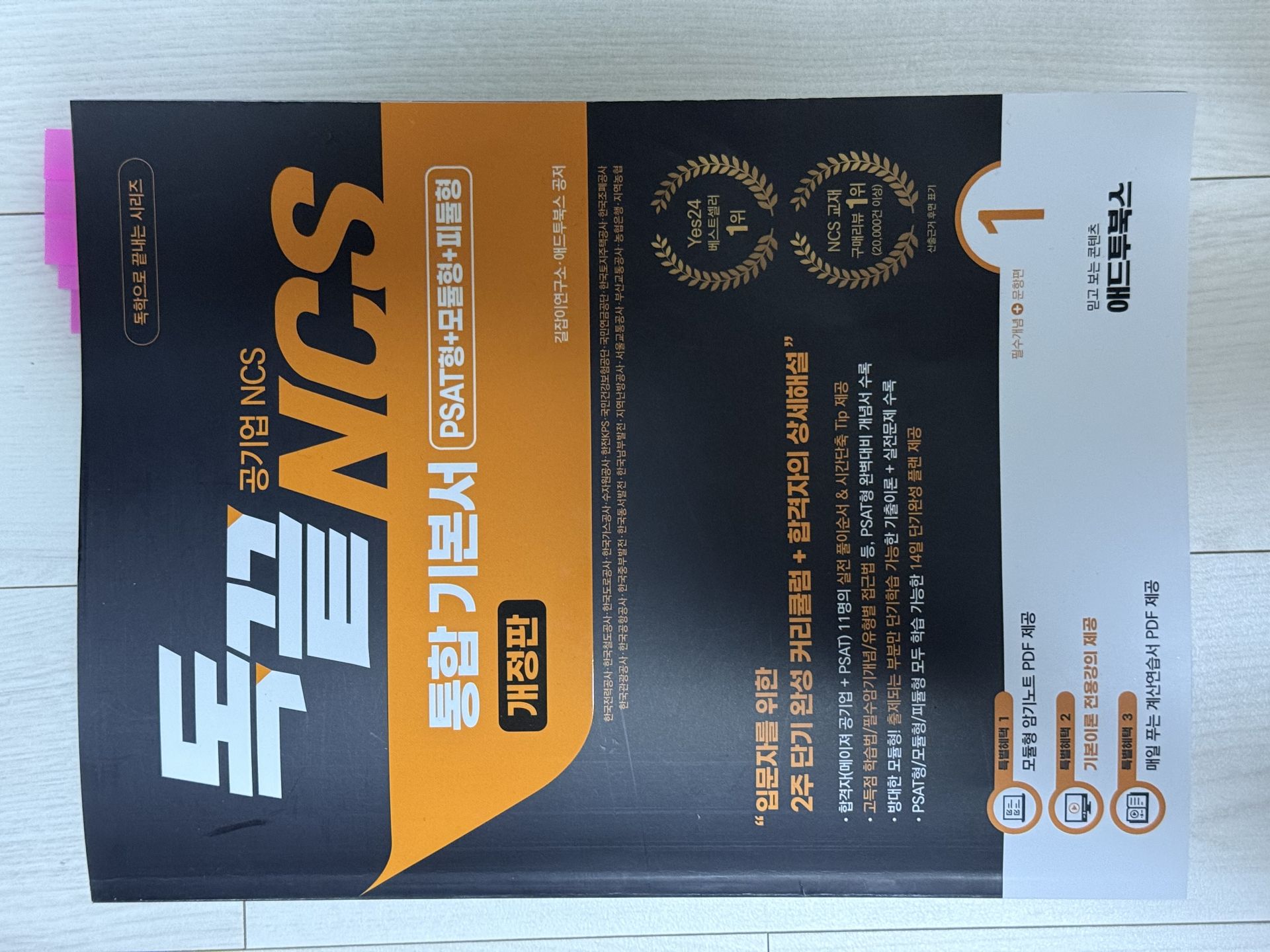 관련 내용을 찾아보다가 애드투 NSC 이석봉 강사님을 발견하게 되었고, 할인까지 받아 코레일NCS 파이널 합격 컷 강의를 수강했습니다. 책은 첨부된 이미지 참고 부탁드립니다 -> NCS공부를 처음 접하는 사람으로서 강의만 듣는거는 한계가 있다고 생각합니다. 교재로 다양한 유형을 접하는게 중요한 것 같습니다.