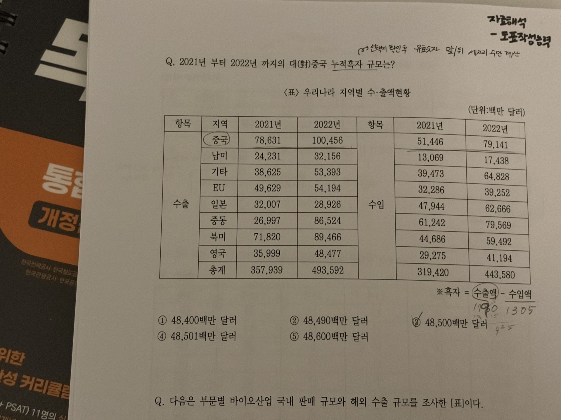 자료해석 파트도 혼자 문제풀이를 진행한 뒤 박수웅 강사님의 강의를 들으며 복습하는 방식으로 공부를 진행했습니다.