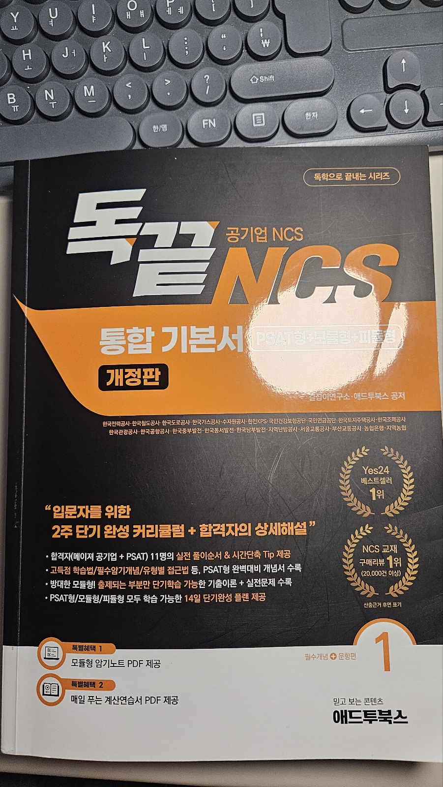 ncs를 본격적으로 시작하면서 어떤 교재가 좋을까 생각하다 평이 좋은 독끝 ncs 기본서를 선택했습니다.