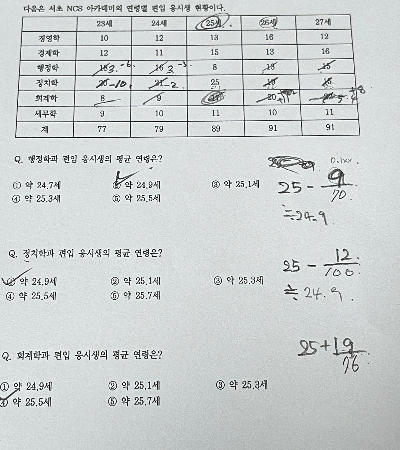 응용수리 파트에서는 기본 개념을 꼼꼼하게 짚어주며 시작해, 점차 난이도를 높여 실전 문제에 접근할 수 있도록 구성되어 있었습니다. 특히 자주 출제되는 비율, 확률, 경우의 수, 속도·거리·시간 문제 등 핵심 유형들을 정리해 주셨고, 풀이 시 자주 하는 실수를 미리 짚어주셔서 실제 시험에서 시행착오를 줄일 수 있겠다는 자신감이 생겼습니다. 반복적인 예시 문제 풀이를 통해 단순 암기가 아니라 자연스럽게 문제 해결 방식을 습득할 수 있었던 것도 큰 장점이었습니다.
