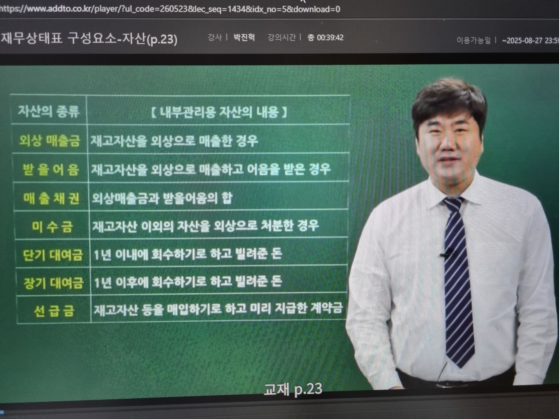 하루 수업량도 적당하여 무리 없이 해낼 수 있을 것 같습니다. 강의 듣기 전 책 구입 후 주말에 책만 펴 놓고 멍 때렸었는데 강의 들으니 확실히 너무 좋네요!! 앞으로도 열심히 들어서 꼭 합격 후기 남기도록 하겠습니다. 회계에 쉽게 다가갈 수 있도록 도와주신 선생님께 너무 감사합니다!