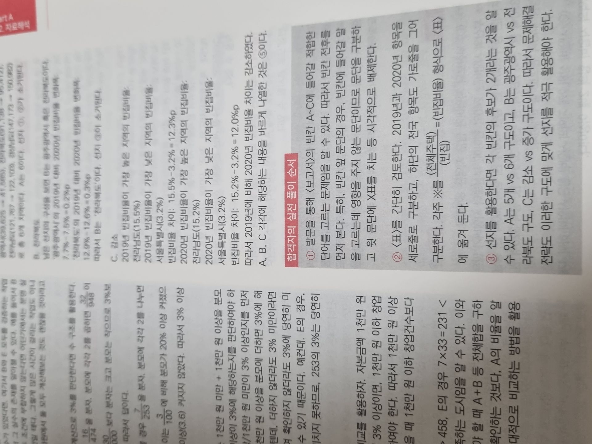 저는 학습 방법을 세 단계로 나누어 진행했습니다. 먼저 인강을 들으며 문제 유형별 접근법을 정리했고, 특히 분수 비교를 분모·분자 관계로 단순화하는 방법과 증감률을 빠르게 계산하는 공식 덕분에 문제 풀이 속도가 확실히 빨라졌습니다. 이후 교재를 활용해 틀린 문제를 표시해두고 다시 복습하며 개념을 강화했습니다. 마지막으로 모의고사 형식의 문제를 실제 시험 시간에 맞춰 풀면서 시간 관리 능력을 훈련했는데, 이 과정을 통해 실전 감각을 키울 수 있었습니다.