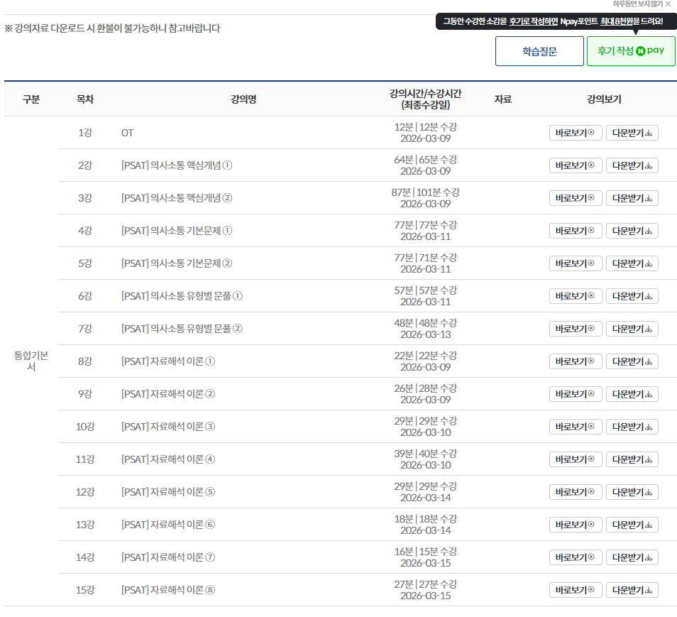 이번 상반기에는 이 강의를 기반으로 꼭 좋은 결과를 얻고 싶습니다. 무엇보다 이번 이벤트를 계기로 완강까지 이어가는 것이 현재 가장 큰 목표입니다. 혼자 공부 습관을 잡기 어려운 분들이라면, 방향을 잡아주고 꾸준함을 유지하는 데 큰 도움이 되는 강의라고 생각해 적극 추천드립니다. 😊 -