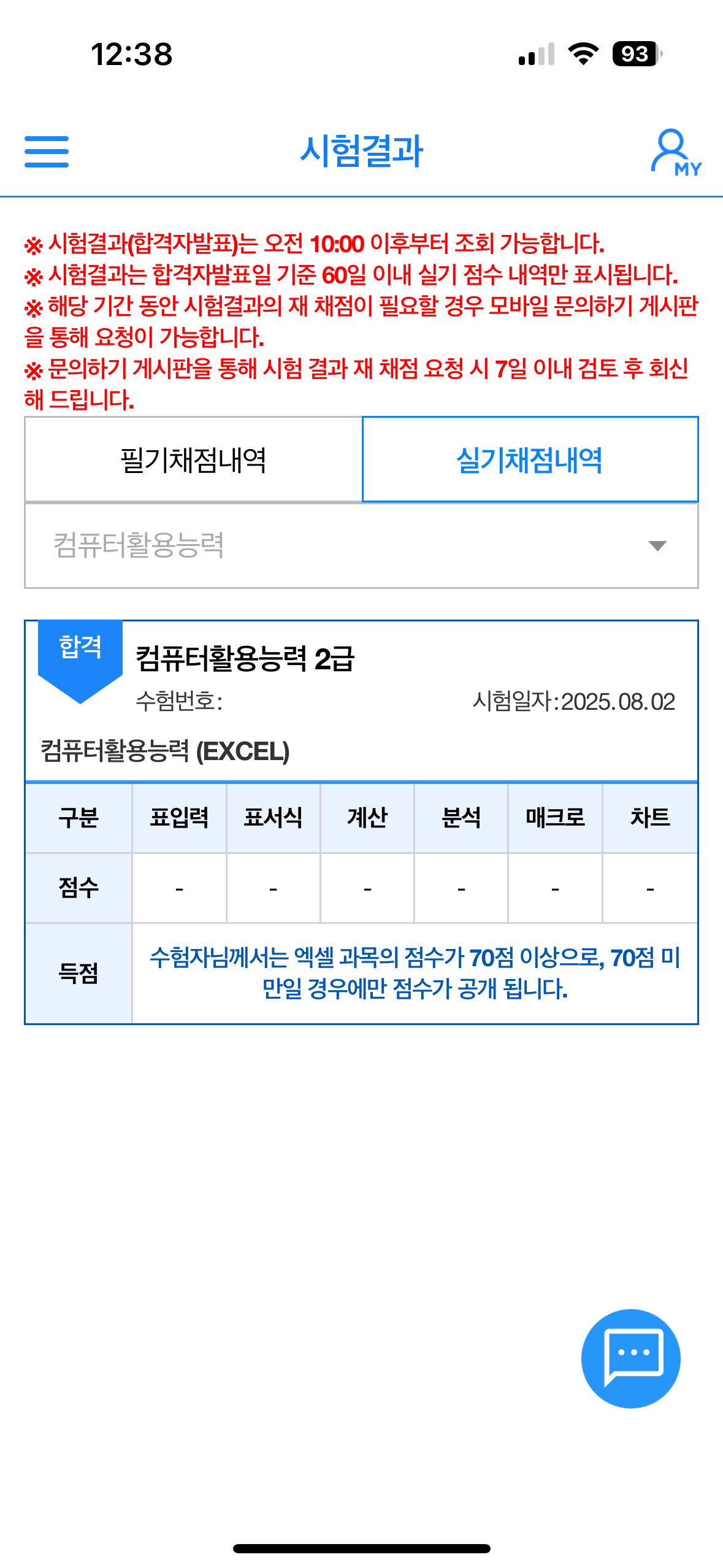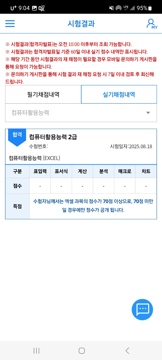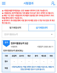본 시험에서 함수 계산 문제, 조건부 서식 문제 총 두문제를 아예 못 풀었지만 나머지는 열심히 풀어서 합격할 수 있었어요.