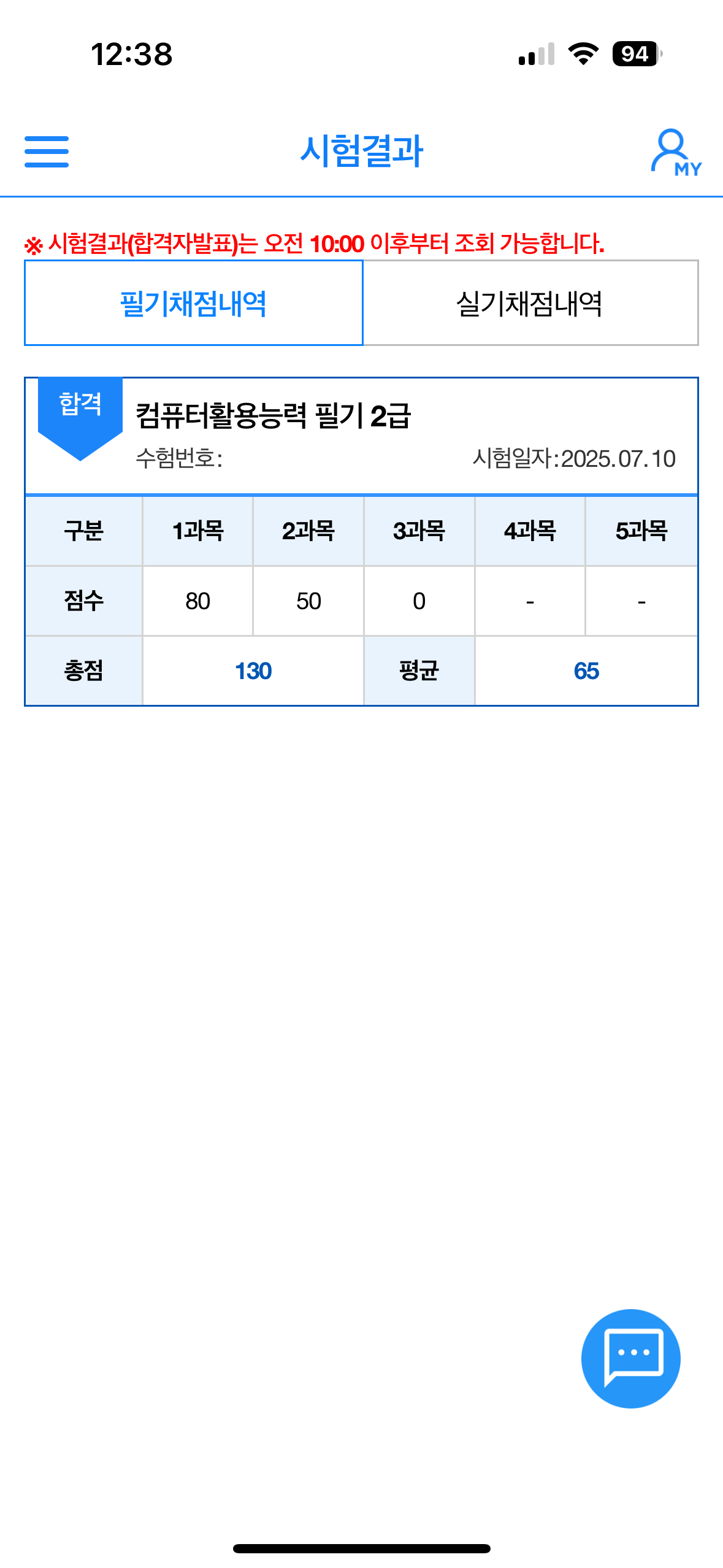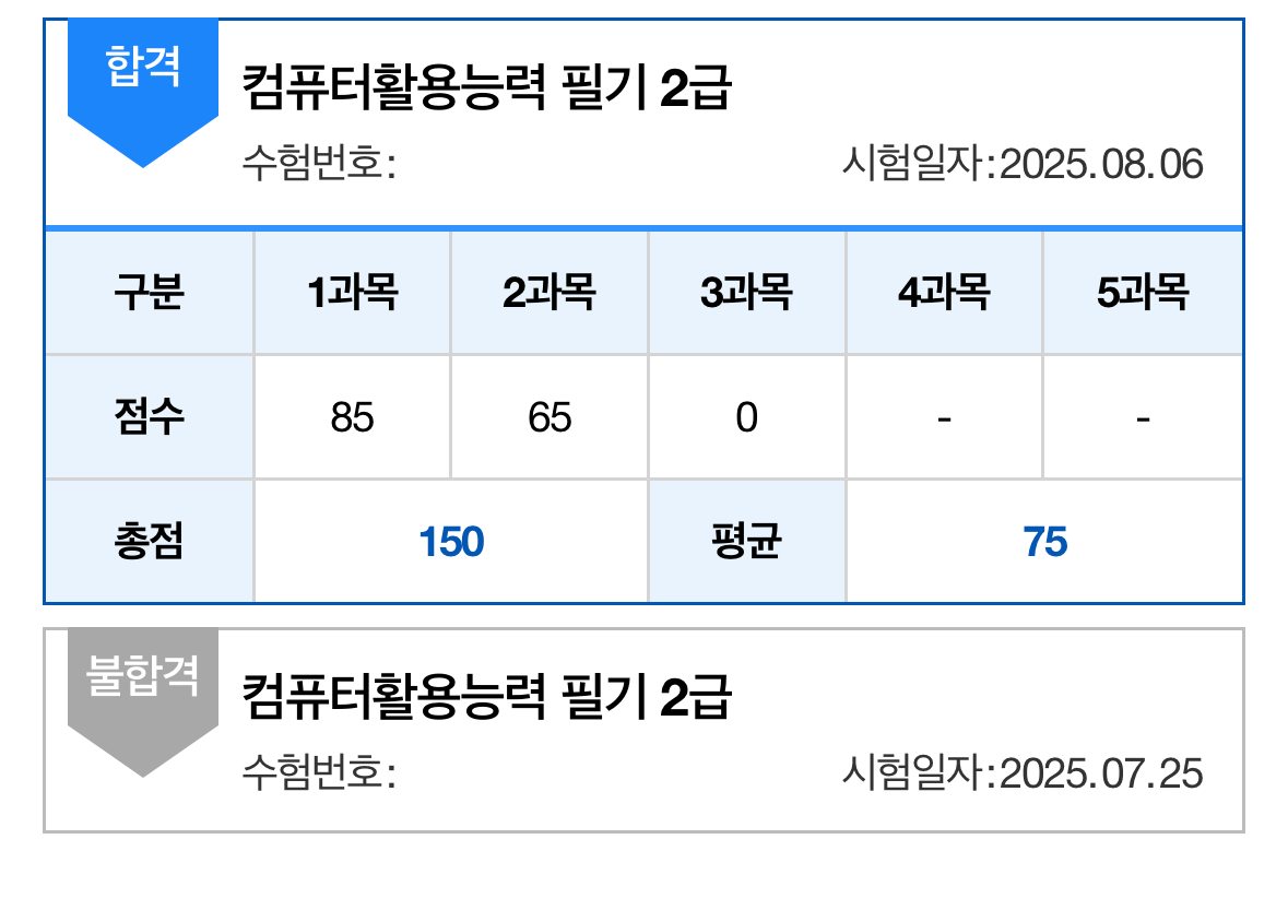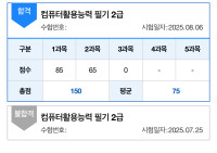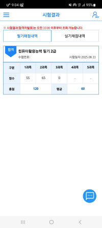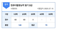 과락은 면했구나... 1과목 없었으면 합격 못 했다...ㅠㅠ