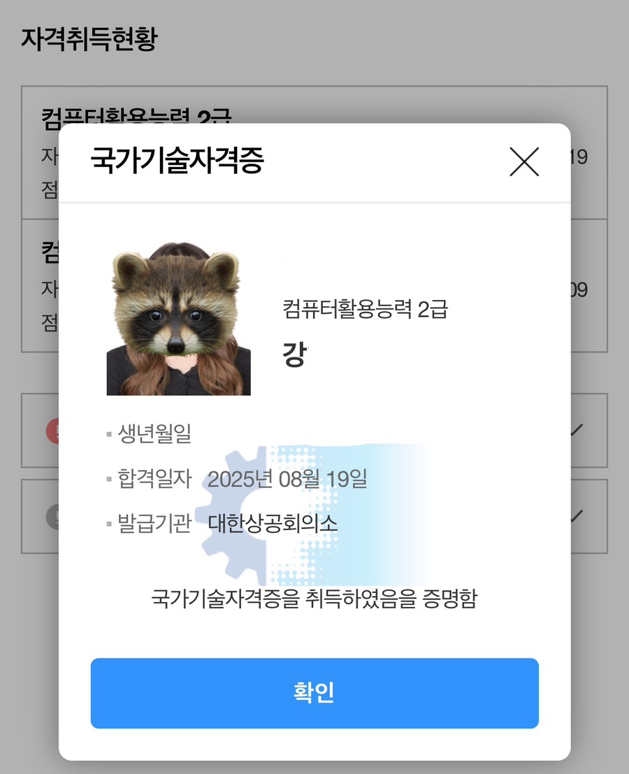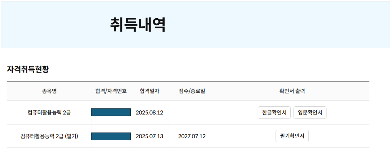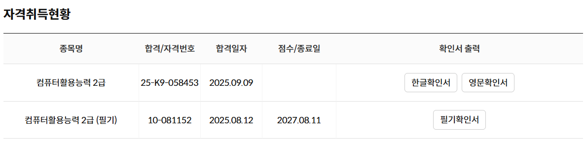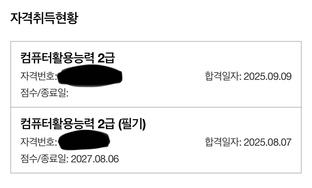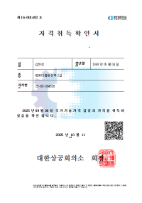 방학 동안 목표를 세우고 도전했는데, 방학이 끝나기 전 자격증을 취득해 매우 뿌듯했습니다.