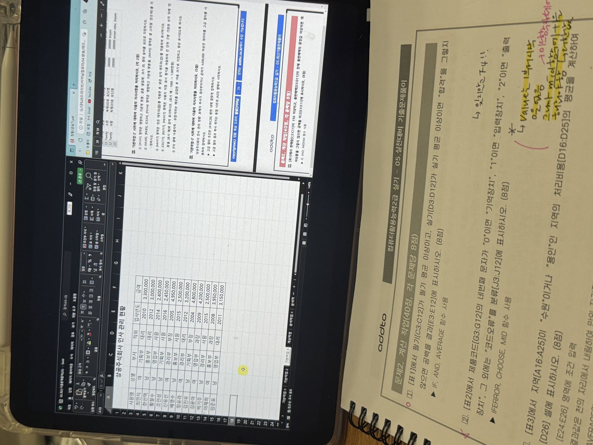 확실히 실기 문제를 먼저 풀어보고 필기를 시작하니까 엑셀 이해도가 올라갔고 워크시트 관련 문제는 쉬웠던 거 같아요.