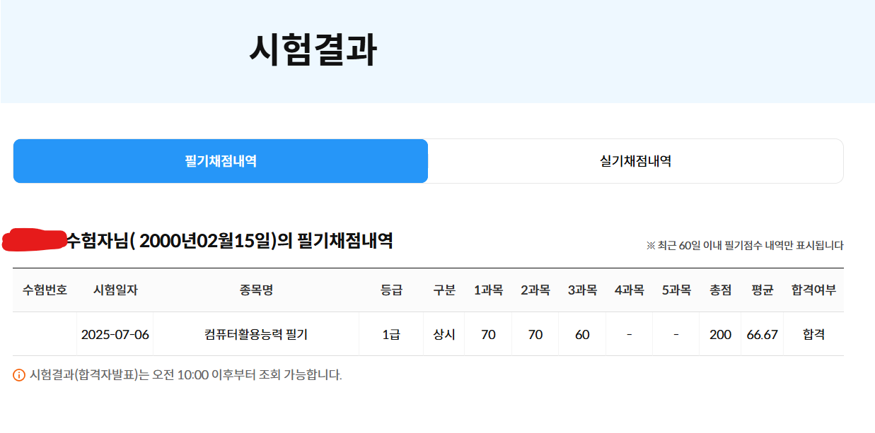 이렇게 한달동안 다시 공부하고 6월 되자마자 시험 봤더니 합격!!!!
