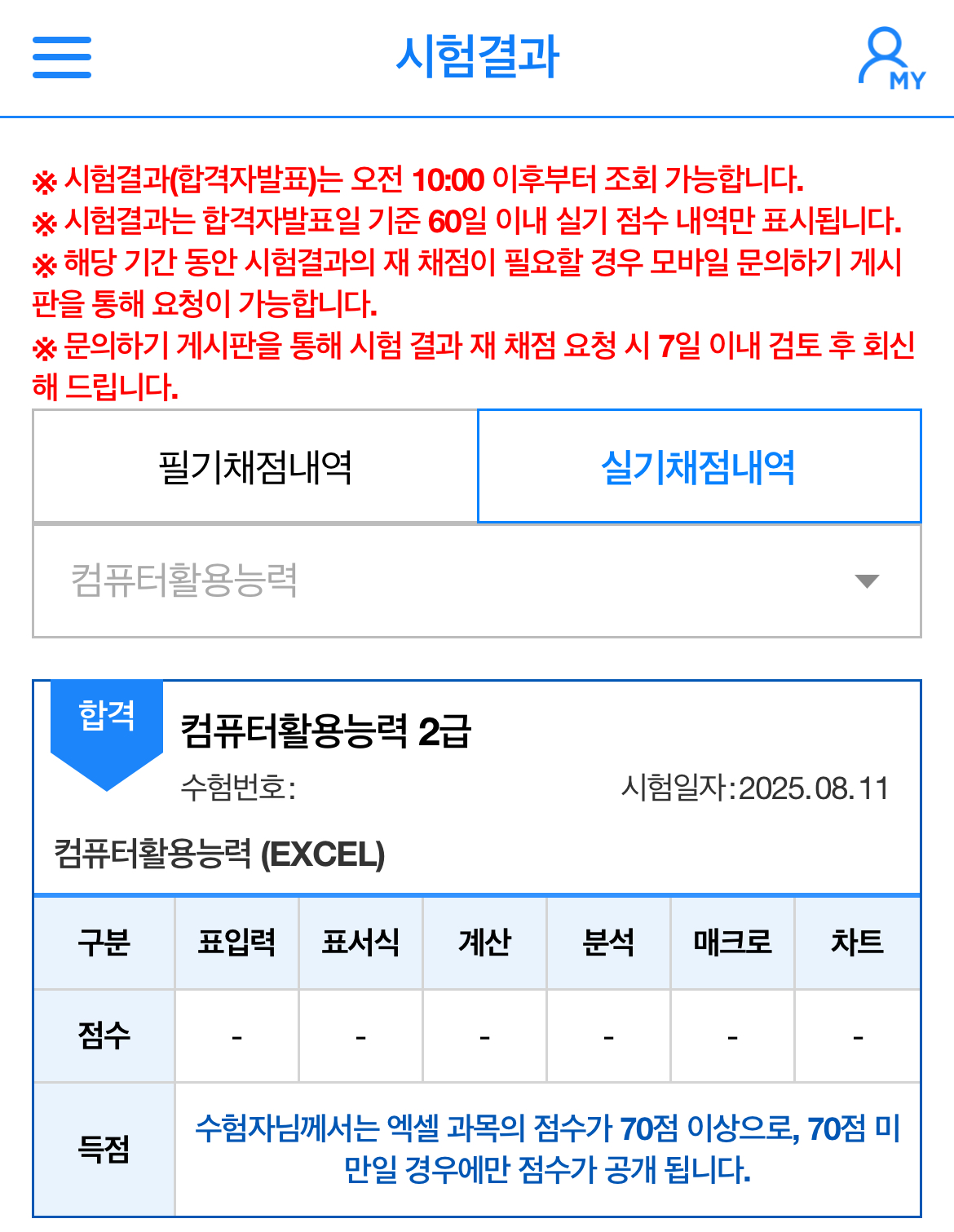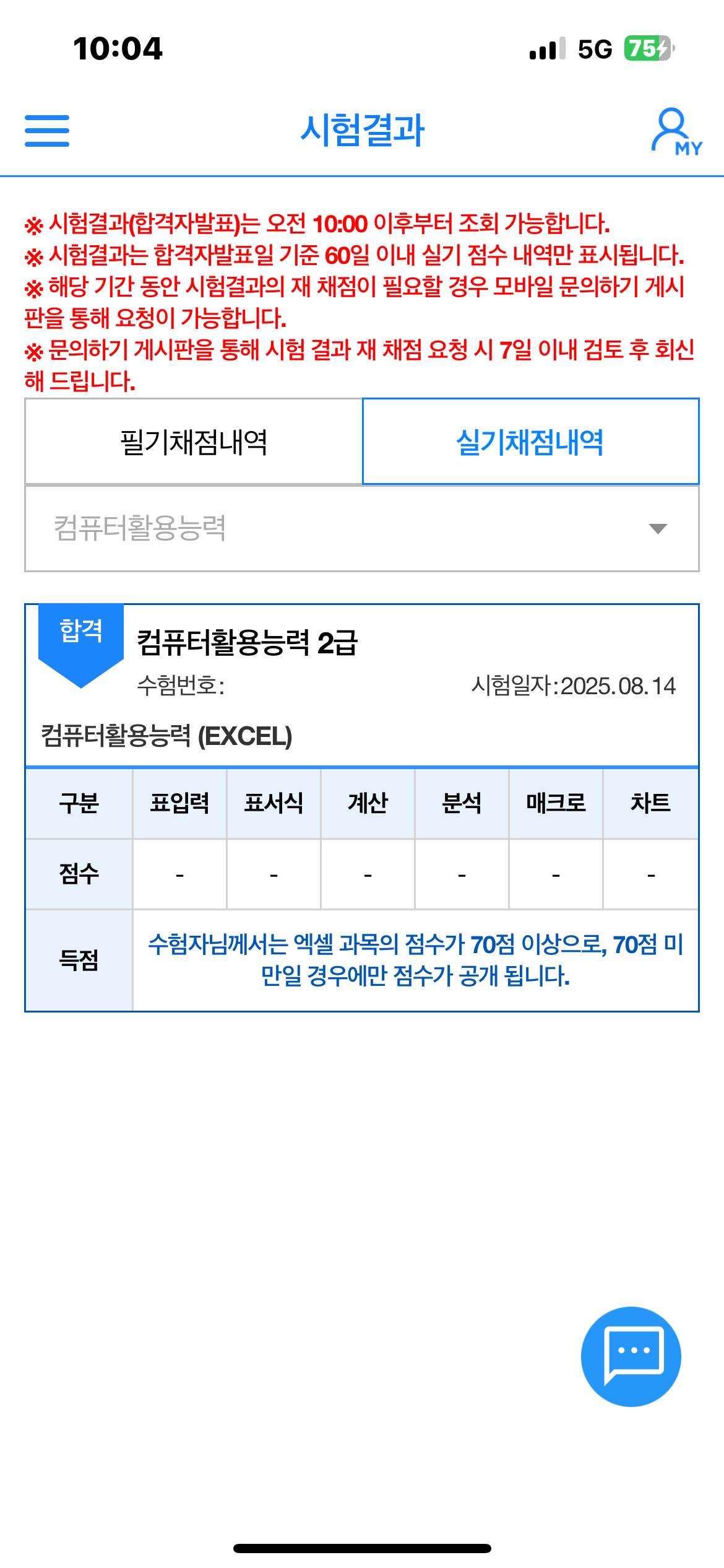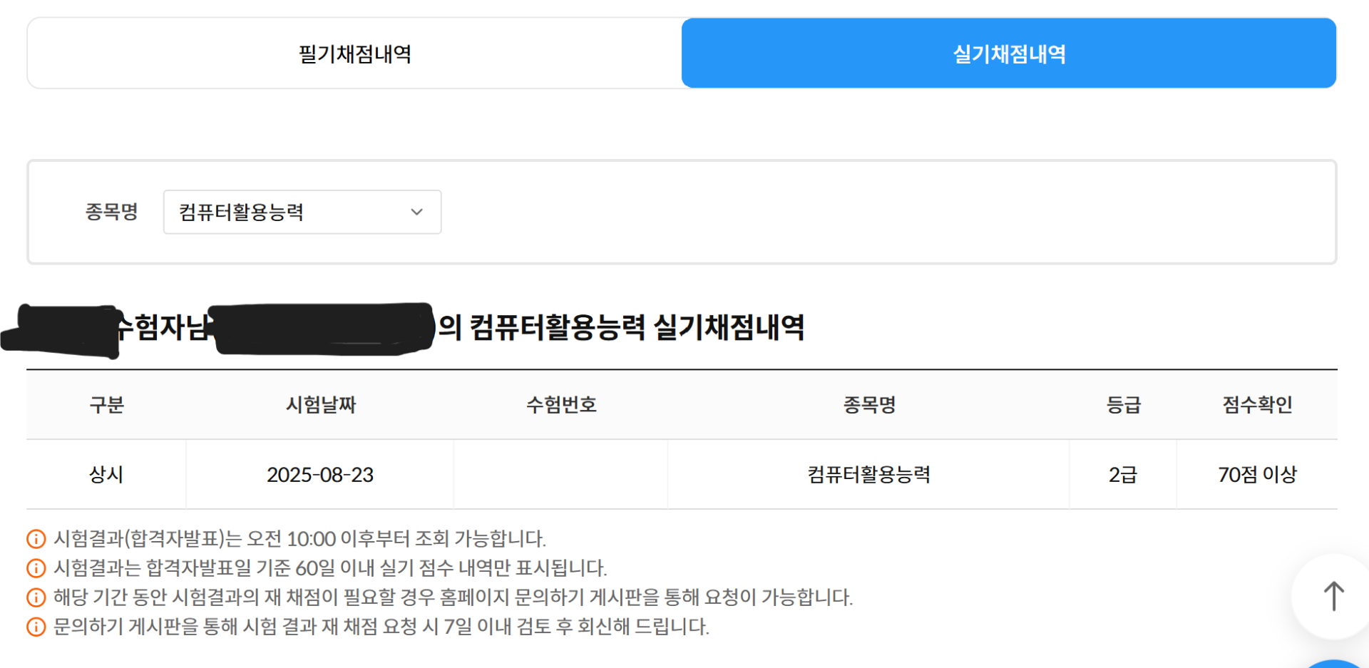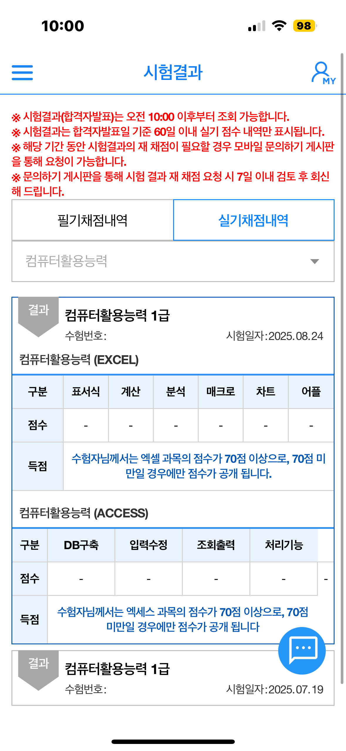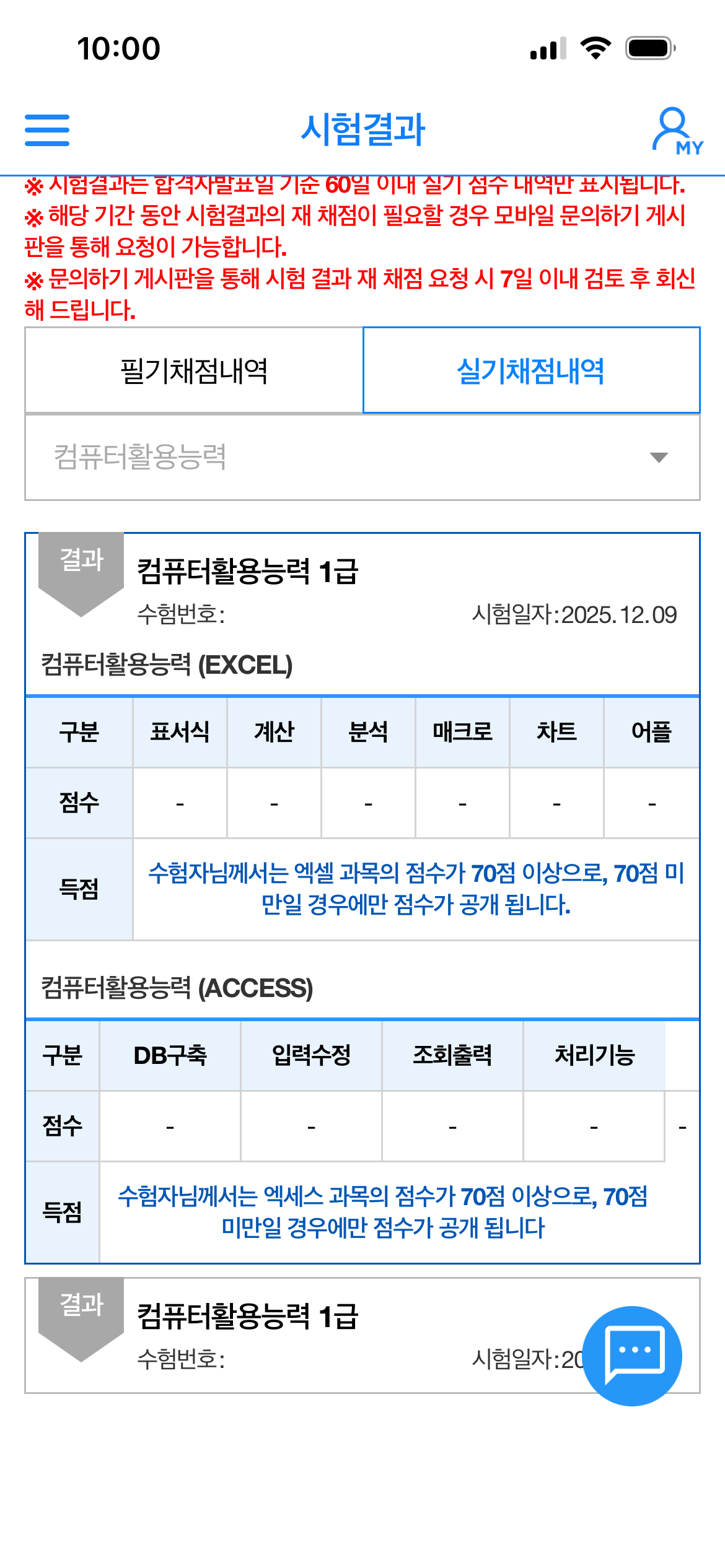 ① 제목: 컴퓨터활용능력 실기시험 7번만에 합격후기 ㆍ저는 나이가 50이 넘은 공무원입니다. 평생학습교육관과 유투브 채널을 통해 2급을 1번에 통과했고 엑셀을 통해 스프레드시트의 매력에 빠졌습니다. 그리해서 1급도 쉽게 접근하였습니다. 그래서 유부브 무료 강좌를 통해 공부를 했는데 필기부터 난관에 봉착했습니다. 그래도 열심히 한끝에 필기는 어찌어찌 합격했지요. ㆍ문제는 실기가 문제였습니다. 혼자 공부하며 3회차까지 시험을 보는데 공부하며 접했던 문제는 거의 나오지 않고 너무 어려워서 AI에게 가장 최신기출을 많이 다루는 인강을 추천해 달라고 했습니다. 을 추천해 주었고 100%환급반이 있다는 것을 알고 신청하여 공부를 하였습니다. ㆍ에서 기초는 2주 정도 공부한 후 심화부스트 문제를 위주로 3번정도 반복하여 풀었습니다. 심화문제가 도움이 많이 되었던것 같습니다. 그러나 그것만으로는 합격하는데 부족한 부분들이 많이 있더라구요. 실기시험을 보면서 처음 접하는 문제들이 많이 보입니다. ㆍ모르는 것과 시험장에서 못푼 문제 등은 이미남 선생님께 질의하면 바로바로 피드백을 주셔서 너무 좋았습니다. 그리고 최신 기출문제는 반드시 꼭 풀어보고 실제시험에 임하는 것을 추천합니다. 최신기출에서 동일한 패턴의 문제들도 상당수 있더라구요. ㆍ시험에 처음 접하는 문제는 고급 필터, 조건부 서식인데 뭔지 모르지만 점수가 잘 안나오는 부분입니다. 꼬아서 문제를 출제하는 경향이라 실제시험 불합격했을때 이부분에서 점수를 많이 못땄던것 같아요. ㆍ실기시험에서 가장 점수가 안나오는 부분은 함수라 생각합니다. 함수는 진짜로 생각을 많이 해야하는 것도 중요하지만 문제를 판독하는 능력이 선행되어야 한다고 생각합니다. 엑세스도 프로시져나 쿼리도 문제판독이 빨리빨리 안되는 것같아요. 문제를 많이 접해보고 뭘 물어보는 것인지 판독하는 능력을 키우는 것을 선행하면 좋을 것 같습니다. ㆍ7번 시험을 보면서 가장 성적이 않나왔던 부분은 피벗테이블입니다. 피벗테이블에서 행추가, 상위값구하기, 그룹만들기 등 기본적인 것들을 몰랐었는데 그러한 것들이 나오는 추세입니다. 피벗테이블은 세부적인 메뉴까지 모두 알고가셔야 합니다. 강의에서 조금씩 다루는데 강조하지 않는 부분들이라 집중해야 합니다. ㆍ차트도 막대그래프보다는 원형, 방사형 등이 나오는 추세인데 많이 다루지 않아 봐서 당황스럽더라구요. 꼭 익히고 시험에 임하면 좋을 것 같아요. ㆍ프로시져는 일단 간단한 1번과 3번을 먼저 풀고 시간이 있을 때 3번을 푸는 것을 추천합니다. ㆍ는 문제를 많이 풀수록 쉬워지고 시간도 한 10분이상 남게 되더라구요. 문제를 많이 접하고 풀어보는 걸 추천합니다.