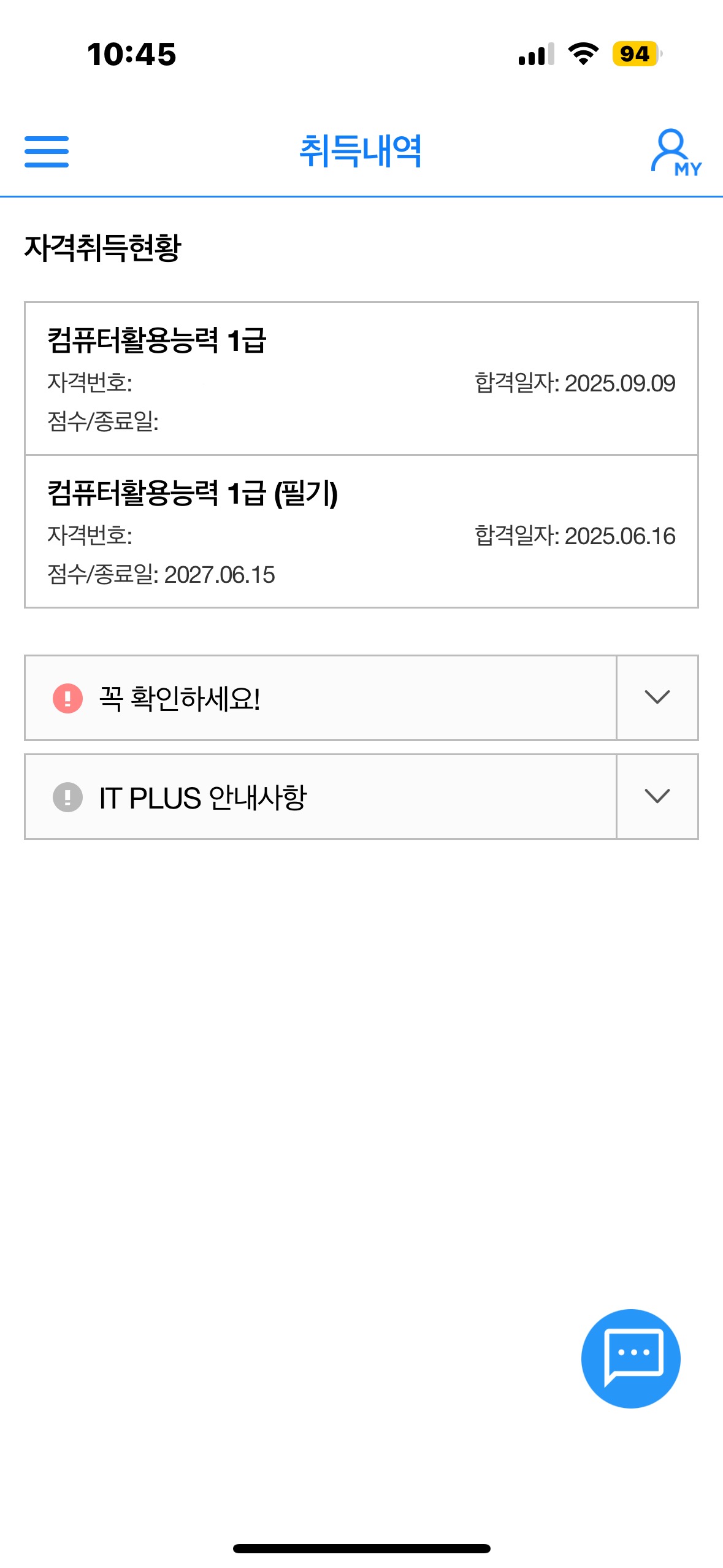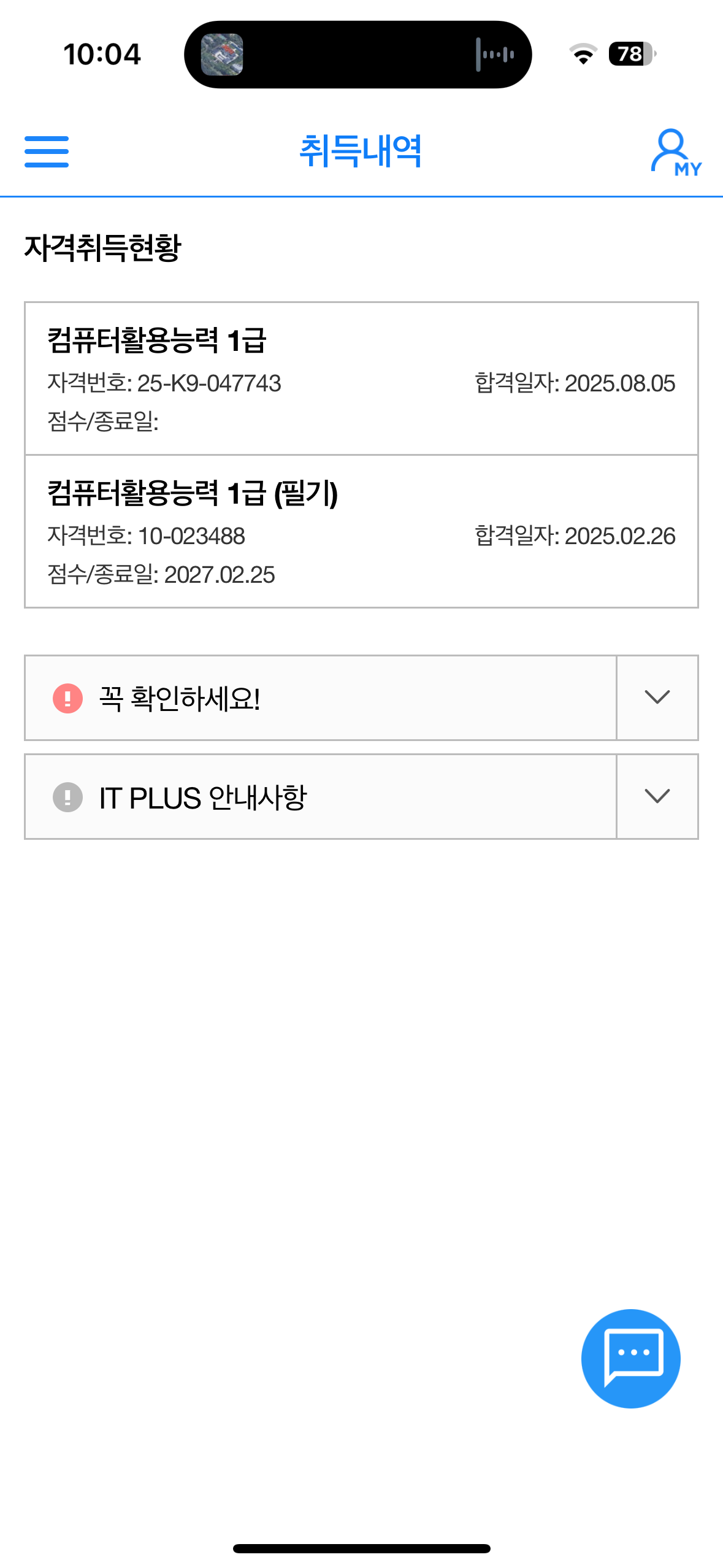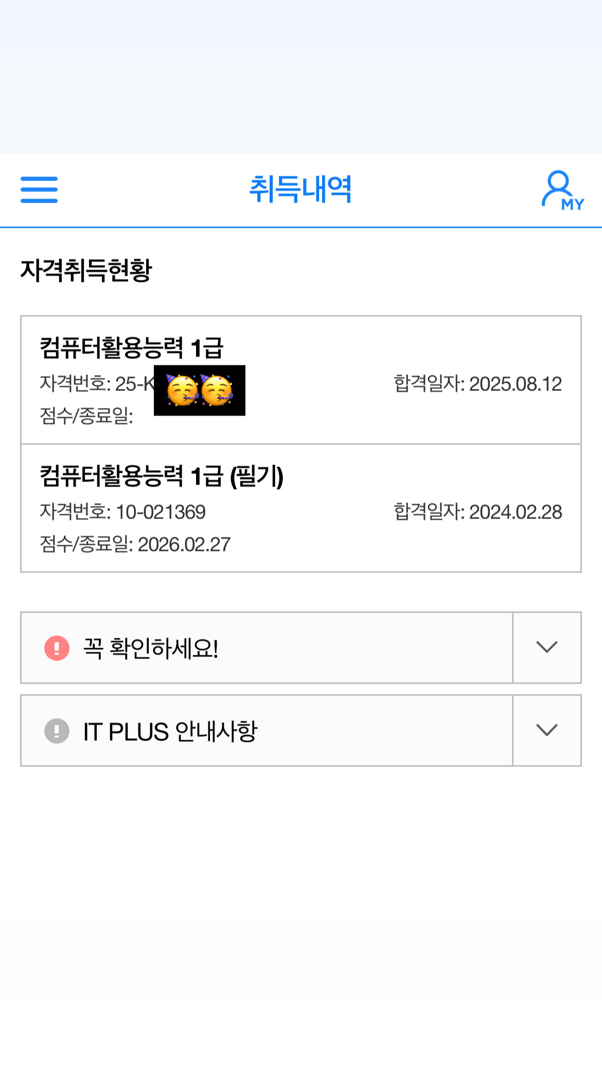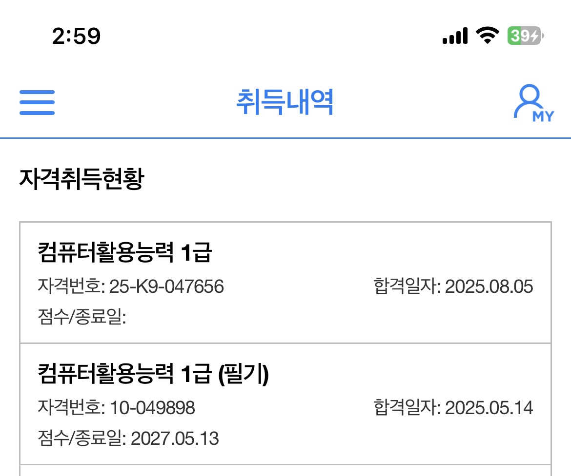 내돈내산! 컴활 1급 필기 실기 합격 후기! 이번에 컴활 1급 시험 준비하면서 애드투 이미남쌤 강의를 들었고, 두 번째 도전 끝에 드디어 합격한 후기입니다!! 필기는 1트로 붙었구요 실기시험에서는 1트는 시험장에 적응하는 연습용시험이라고 생각해서 뭐 당연히 떨어졌습니다. 그래도 그 덕분에 시험장 분위기를 익혀가지고 두번째 시험 때 수월하게 긴장도 안하고 봤던 거 같애요. 나름 꿀팁아닌 꿀팁인 것 같습니다. 처음에는 솔직히 컴활은 이름만 들어도 어렵게 느껴지고, 특히 실기는 엑셀이나 액세스를 제대로 다뤄본 적이 없어서 막막했어요. 근데 이미남 쌤 강의가 단계별로 잘 짜여 있어서 그대로만 따라가도 큰 그림이 잡히더라고요. 교재랑 강의가 연결돼 있으니까 복습하기도 편했고, 기출문제 풀이도 자연스럽게 이어졌습니다. 저는 학교 끝나고 하루에 강의 2~3개씩 꾸준히 들으면서 준비했고, 필기는 2주, 실기는 한 달 반 정도 투자했어요. 필기 공부할 때는 강의에서 알려주신 것처럼 기출문제를 먼저 보고 나중에 개념을 이해해가면서 개념 정리와 기출을 반복했어요. 기출을 반복하다 보니 문제 패턴이 보여서 문제은행식 시험이다보니 실제 시험에서 안 떨고 훨씬 자신감 있게 풀 수 있었습니다. 실기는 특히 강의 덕분이 컸어요. 그냥 문제만 푸는 게 아니라 직접 실습을 하면서 배울 수 있어서 기억이 오래갔고, 어려워하던 함수 문제도 강의에서 반복적으로 다뤄주셔서 시험장에서는 덜 당황할 수 있었어요. 필기든 실기든 무조건 많이 푸는 게 핵심인 것 같습니다.. 또 강의 마지막 쯤에 약간 어려운 유형 모아진 강의 도움 많이 됐습니당. 그리고 제가 생각하는 합격 꿀팁은 무조건 기출을 많이 푸는 거인 것 같아요. 강의 마지막 부분에 실전 기출 10개 세트가 있는데, 그걸 풀면서 완전히 감을 잡을 수 있었습니다. 시험장에 들어갔을 때 어? 이거 어디서 본 문제인데? 싶은 게 꽤 많았고, 덕분에 시간 관리도 수월했어요. 만약 제가 그 기출 세트를 안 풀었으면 또 떨어졌을지도 모릅니다. 이미남 쌤 강의에서 가장 도움됐던 부분이에요!! 풀 문제가 많다는 거요! 강의 커리큘럼만 믿고 차근차근 따라가면서 기출만 계속 반복했어요. 하루에 조금씩이라도 꾸준히 하는 게 진짜 중요합니다. 저도 막 하루에 2시간도 안 한 날도 많고 그런데 일단 하루에 뭐 하나를 풀기라도 하면 도움이 되니까 너무 지치지 마시고 계속 푸는 게 중요한 거 같아요. 그리고 시간분배!! 이게 제일 중요한 거 같은데 저는 이 시간 단축을 위해서라도 45분 타이머 맞추고 기출 푸는 걸 습관화 했어요. 타이머 맞추고 푸는 습관이 정말 정말 중요하고 쌤 말씀처럼 버릴 문제는 과감히 버리는 판단을 하는 게 시간 분배에 정말 정말 도움이 됐답니다. 교재 문제들도 실제 시험이랑 비슷하게 구성돼 있어서 실전 연습에 큰 도움이 됐고요. 결국 두 번째 도전에서 합격 소식을 들었을 때 너무너무너무 뿌듯했어요. 컴활이 쉬운 시험은 아니지만, 저처럼 컴퓨터에 자신 없던 학생도 애드투 이미남 강의랑 기출 연습만 제대로 하면 충분히 합격할 수 있습니다. 지금 준비하시는 분들께 꼭 말씀드리고 싶은 건, 절대 포기하지 말고 기출 반복을 꼭 하라는 거예요. 특히 타이머! 그리고 모르는 문제만 이미남 쌤 풀이 강의로 다시 익히기! 나만의 메모장 만들기. 뭐 이정도일 거 같아요. 이미남 쌤 강의 마지막 실전 기출 10개만 제대로 돌려도 시험장에서 진짜 큰 힘이 됩니다. 저도 그 덕분에 합격했으니까요. 다들 자신감 가지고 준비하시길 바랍니다!