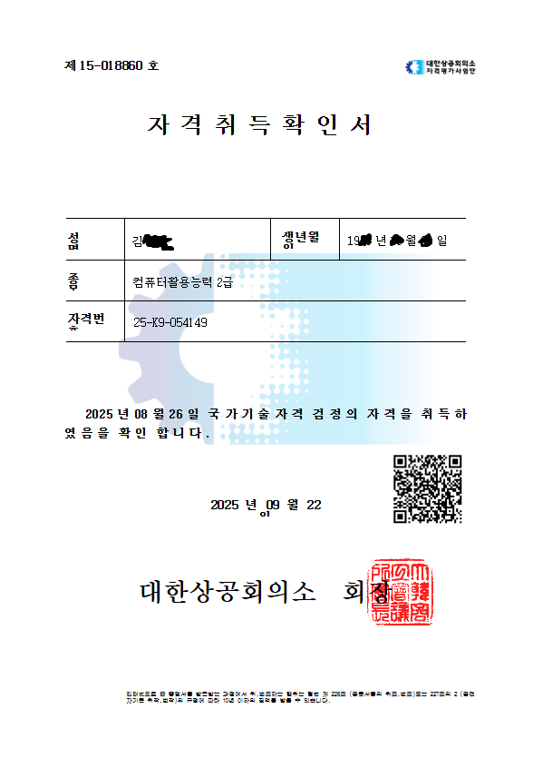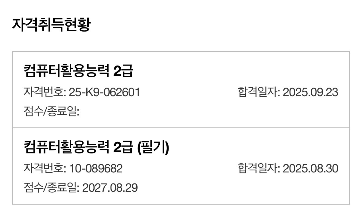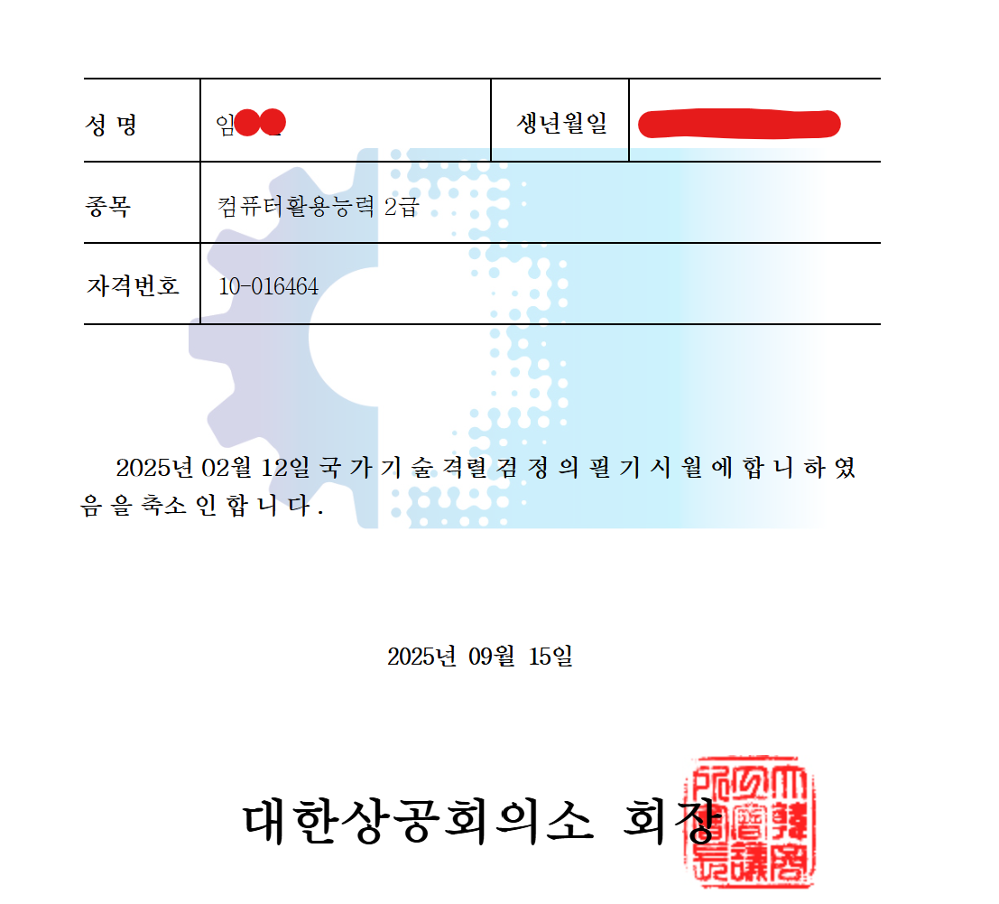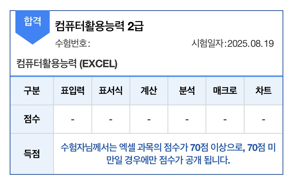 내돈내산! 컴활 1급 필기 실기 합격 후기 - 컴퓨터활용능력 자격증을 단기간에 준비하시는 분들께 조금이나마 도움이 되었으면 하는 마음으로 후기를 정리해본다. 나는 약 2달 안에 자격증을 취득해야 하는 상황에 놓여 있었다. 원래는 컴활 1급을 따는 것이 목표였지만, 준비 기간이 너무 촉박하다고 판단해서 비교적 빠르게 취득할 수 있는 2급을 선택했다. 특히 실기 시험에 대해 주변에서 어렵다는 얘기를 많이 들어서, 처음부터 전략적으로 접근하는 게 중요하다고 생각했다.처음에는 독학으로 해볼까도 고민했지만, 특히 실기 부분에서 막막함이 컸다. 자료도 체계적으로 정리된 걸 찾기가 어려웠고, 혼자서 공부 방향을 잡기에는 시간이 너무 부족했다. 그래서 인터넷으로 검색을 하다가 ‘애드투’라는 온라인 강의 사이트를 알게 되었고,이곳에서 컴활 2급 필기와 실기를 포함한 이미남 선생님 패키지 강의를 수강하게 되었다.< 공부방법 >필기는 평일에 하루 3시간씩 총 5일 동안 집중해서 공부했고, 그 주 주말에 바로 시험을 치렀다. 강의에서 제공하는 PDF 이론 요약집이 정말 핵심만 정리돼 있어서 필기 공부에 큰 도움이 되었다. 이론을 몇 번 반복해서 읽고, 기출문제를 풀면서 감을 익히니 자신감이 생겼다. 실제 시험에서도 강의 내용과 거의 유사한 문제들이 나와서 수월하게 풀 수 있었다.실기 공부는 필기 이후부터 본격적으로 시작했다. 평일 기준 하루 2시간 정도씩 투자해서 약 3주간 꾸준히 공부했다. 실기에서 중요한 것은 기능을 ‘머리로 외우는 것’보다 ‘손에 익히는 것’이라는 걸 강의를 들으며 확실히 느꼈다. 엑셀의 다양한 기능들을 강사님이 차근차근 설명해주셨고, 실습용 파일과 기출문제 풀이를 통해 실전 감각을 키울 수 있었다. 마지막에는 실제 시험 시간에 맞춰 연습도 했는데, 이 과정이 실전에서 시간 관리에 큰 도움이 되었다.개인적으로는 강의 자료 중에서도 PDF 파일이 가장 유용했다고 느꼈다. 깔끔하게 정리된 내용을 보면서 공부하니까 혼자 책을 보며 정리할 때보다 훨씬 효율적이었다. 특히 필기 파트는 이 자료만 제대로 숙지해도 충분히 합격할 수 있을 거라는 확신이 들었다. 실기는 연습용 파일을 여러 번 반복하며 감각을 익혔고, 반복할수록 확실히 속도와 정확도가 올라갔다. 이 강의가 나에게 도움이 되었던 가장 큰 이유는 ‘공부 방향’을 잡아준 점이었다. 혼자 공부하면 어떤 걸 먼저 해야 할지, 어떤 부분에 시간을 더 투자해야 할지 헷갈릴 수밖에 없다. 그런데 강의를 통해 자연스럽게 학습 흐름을 따라가다 보니, 전체적인 큰 그림을 그릴 수 있었고, 불필요하게 시간을 낭비하지 않게 되었다. 단기간에 자격증을 준비하는 사람에게는 이런 학습의 ‘틀’이 무엇보다 중요하다고 생각한다.정리하자면, 컴활 2급은 제대로 된 강의와 학습 자료만 있다면 짧은 시간 안에도 충분히 합격이 가능한 자격증이라는 생각이 든다. 나처럼 단기간에 자격증이 필요한 분들, 혹은 실기에서 막막함을 느끼는 분들께는 온라인 강의 수강이 좋은 선택지가 될 수 있다고 말하고 싶다.혹시 컴활 자격증을 준비 중이라면, 무턱대고 혼자 공부하기보다는 본인에게 맞는 학습법이나 자료를 찾아서 체계적으로 준비해보길 추천한다.