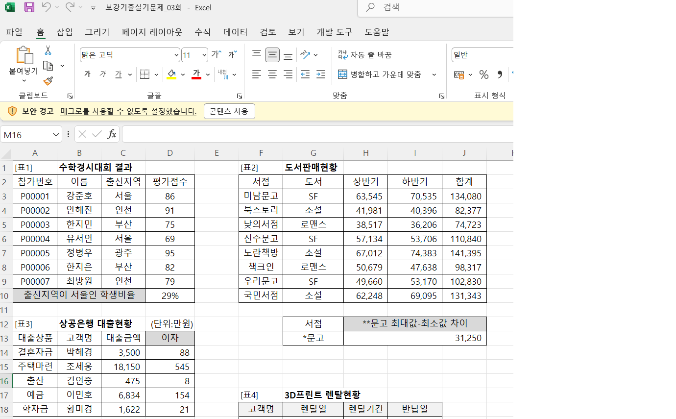 31강 | 복원예제01(조건부서식과 통합), 02(자동필터) | 20분 27초 |