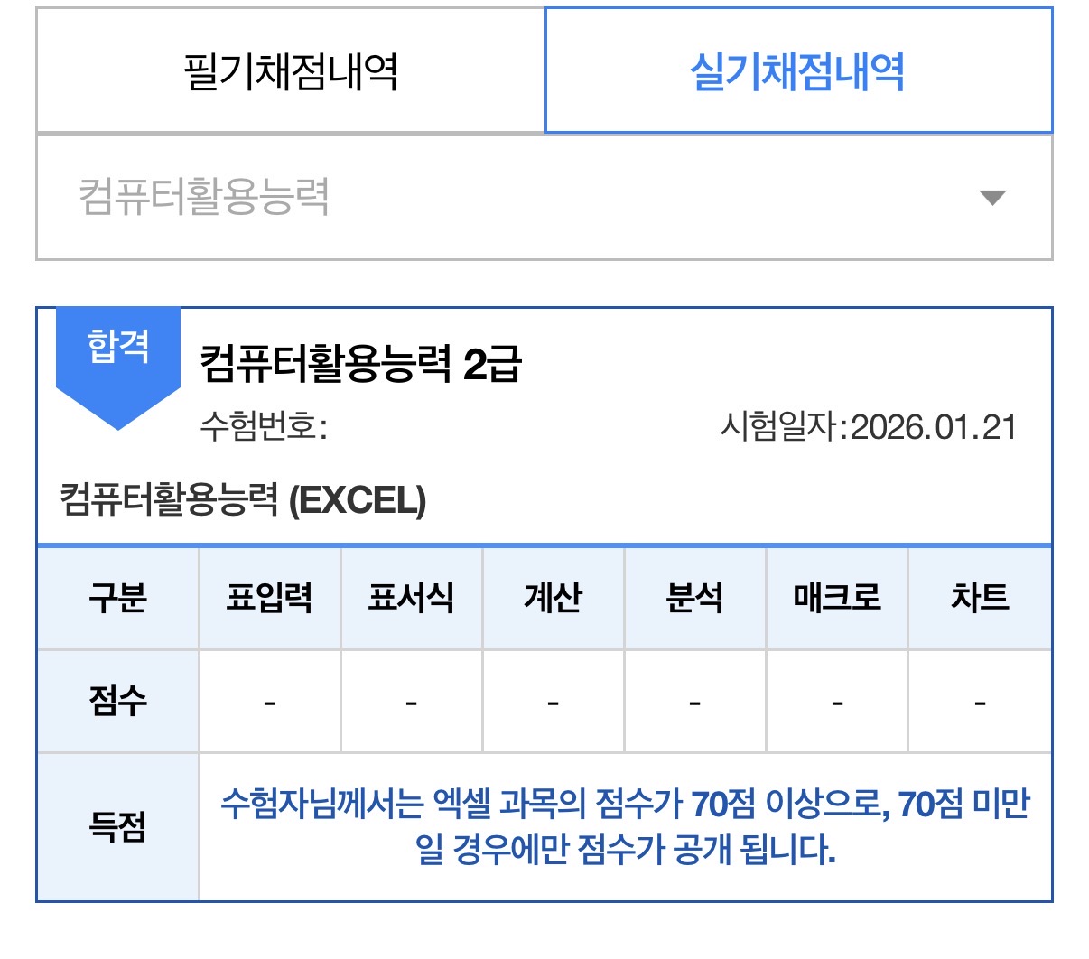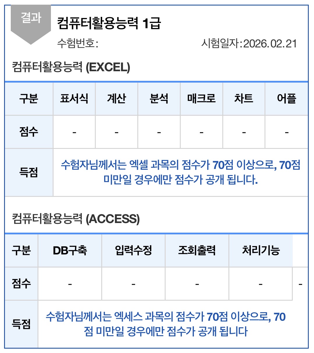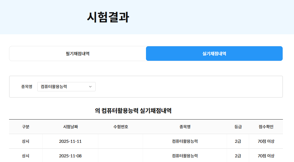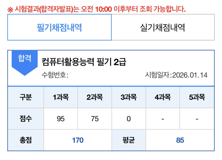무엇보다도 과목당 45분 안에 문제를 풀고 70점 이상 받을 수 있도록 기출문제를 푸는 연습을 하셔야 합니다.