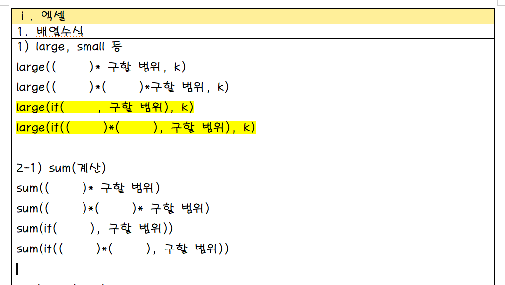 그런데 1급은 배열수식으로 작성을 해야 하는 부분인데,