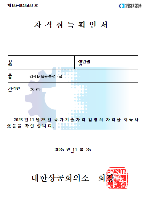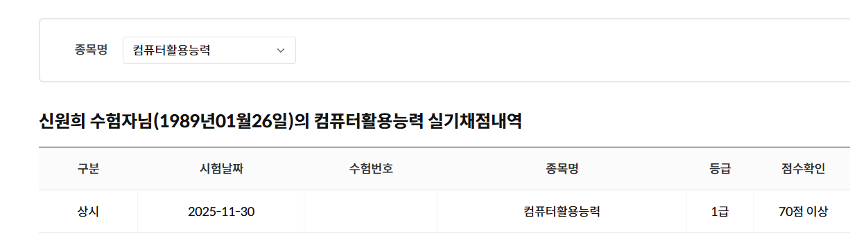 내돈내산! 컴활 1급 필기 실기 합격 후기! 드디어 취준생의 숙제와도 같았던 컴활 1급을 최종 합격했습니다! 노베이스 상태에서 시작하느라 걱정이 많았는데, 직접 강의를 비교해보고 선택한 내돈내산 후기를 생생하게 남겨보려 합니다. 결론부터 말씀드리면 덕분에 생각보다 빠르게 자격증을 손에 넣을 수 있었습니다. 1. 응시 정보 및 준비 기간 - 응시 급수: 컴활 1급 (필기 & 실기) - 응시 횟수: 필기 2회, 실기 3회 - 준비 기간: 총 6주 (필기 1주 + 실기 3주) 2. 필기 합격 공부법 필기는 문제 은행 방식이라고는 하지만, 1급은 개념 이해 없이 기출만 돌리기엔 양이 너무 방대했습니다. - 공부 방법: 의 실기 강의를 먼저 수강하며 DB, OA의 전체적인 흐름을 파악했습니다. 그 후 최근 5개년 기출문제를 반복해서 풀며 오답 노트를 정리했습니다. - 도움이 된 점: 이미남 선생님께서 시험에 자주 나오는 핵심 키워드를 딱딱 짚어주셔서 공부 범위를 획기적으로 줄일 수 있었습니다. 특히 2과목 스프레드시트의 생소한 함수들을 이해하는 데 큰 도움이 되었고 생소한 데이터베이스를 이해하는데 도움이 되었습니다. 3. 실기 합격 공부법 실기는 정말 '손에 익히는 것'이 중요했습니다. 엑셀과 액세스라는 생소한 프로그램을 다루는 게 쉽지 않았지만, 커리큘럼을 믿고 따라갔습니다. - 공부 방법: 먼저 강의를 보며 기능을 하나하나 따라 해본 뒤, 2회독부터는 강의 없이 스스로 문제를 풀었습니다. 막히는 부분만 선택적으로 강의를 다시 보며 약점을 보완했습니다. - 이미남 컴활 활용법: 이미남 선생님의 강의는 설명이 매우 친절하고 깔끔합니다. 자칫 복잡할 수 있는 배열 수식이나 프로시저 작성을 수험생 눈높이에서 쉽게 설명해 주셔서 포기하지 않을 수 있었습니다. 특히 실제 시험장과 유사한 상설 복원 문제 풀이가 실전 감각을 키우는 데 결정적인 역할을 했습니다.