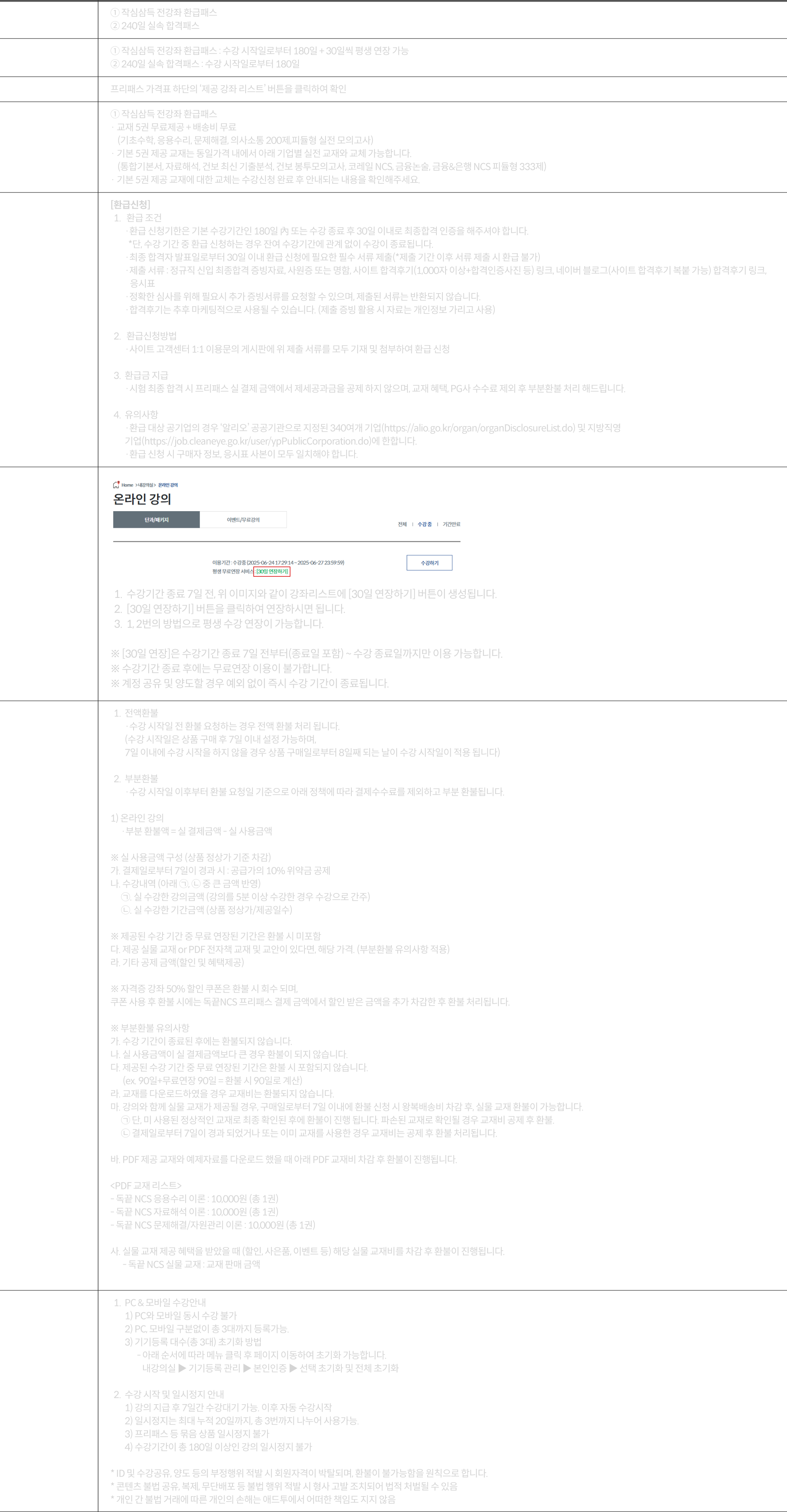 * 환급은 제세공과금을 공제 하지 않으며, 기본 수강기간 180일 이내 신청 必,